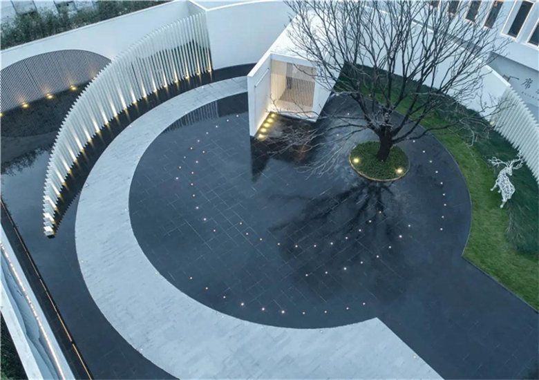 结合“石与流”“光与影”“白与灰”的设计元素,展现场地、建筑、空间、景观的意境。