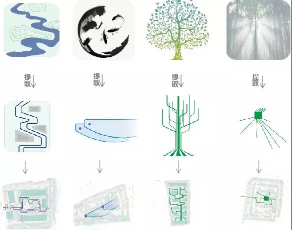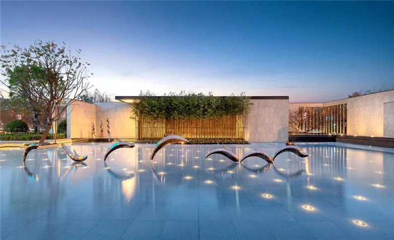 将“鱼、水 、树、光 ”元素融入景观,借鉴中式园林造园精髓;