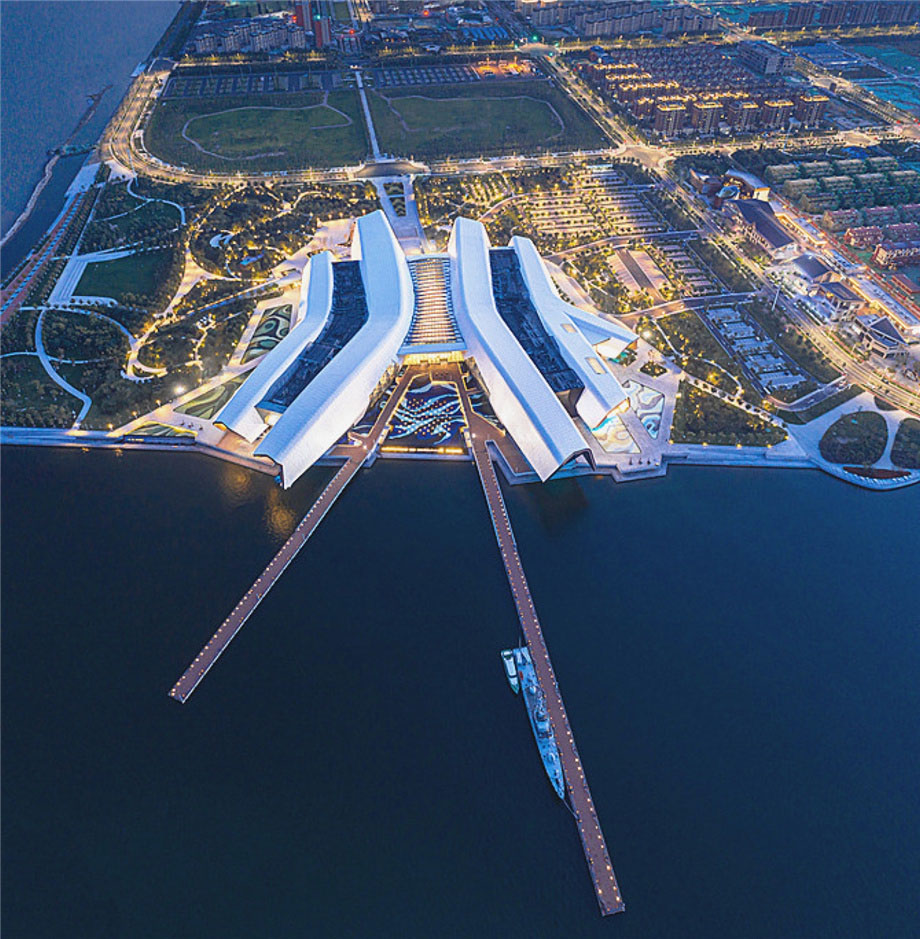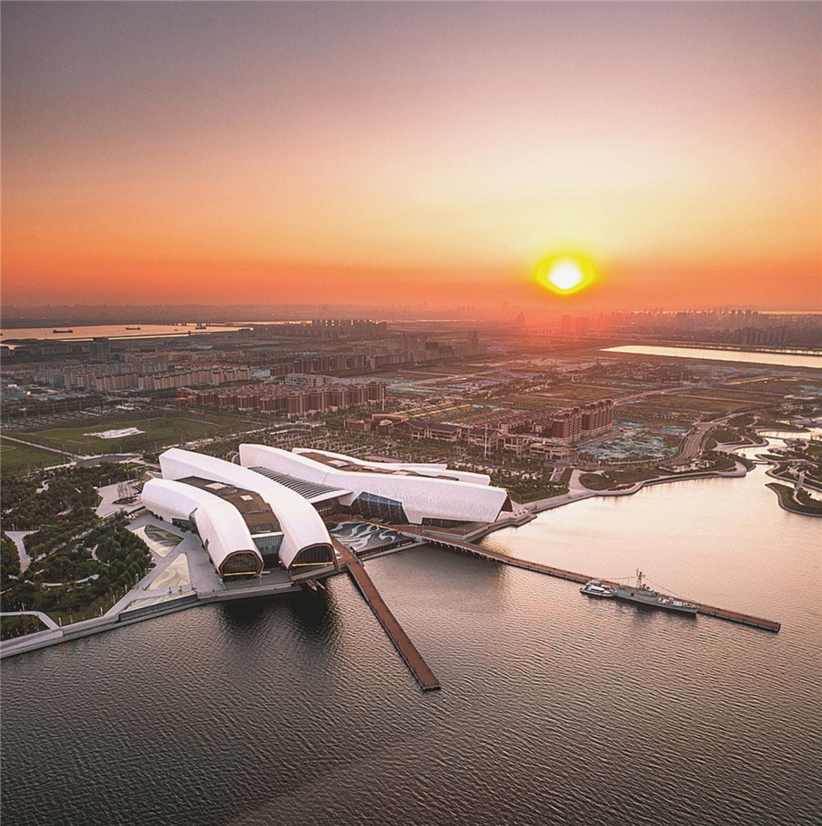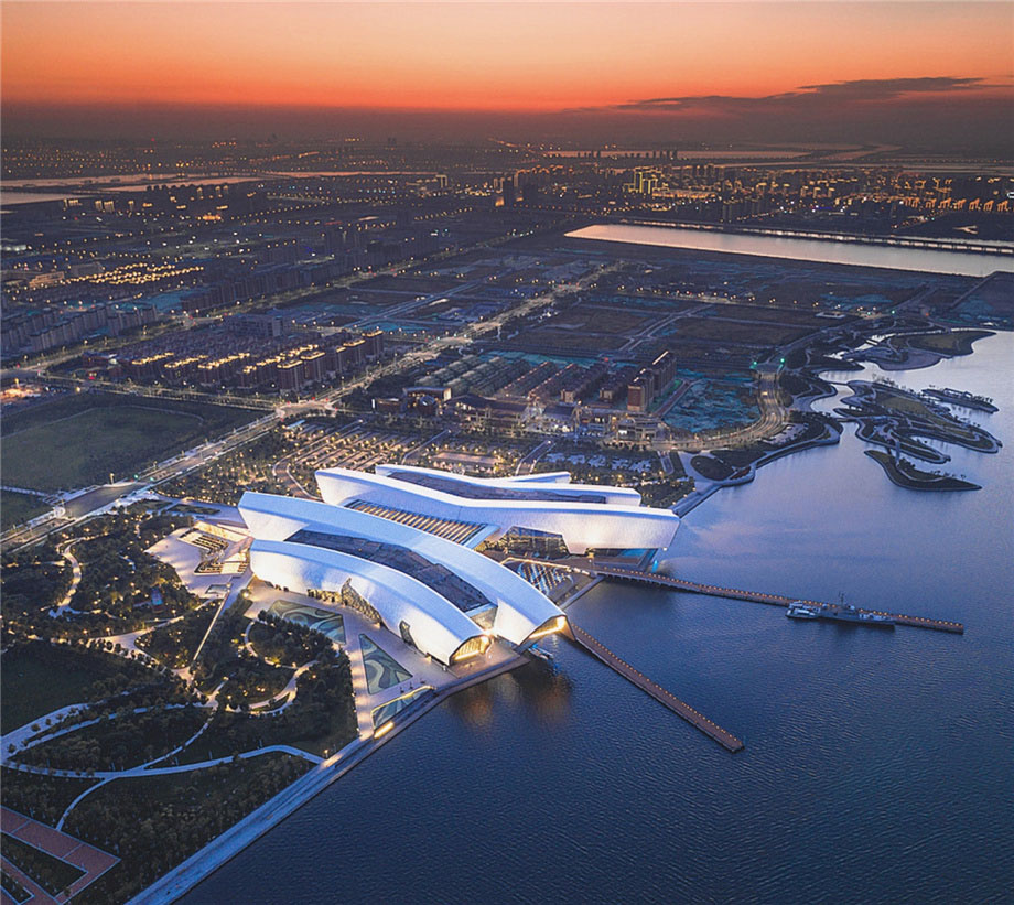 博物馆呈现出独特的造型,从巨大的滨水公园延伸到一旁的海湾内。作为中国的第一个国家海洋博物馆,可谓是一次历史性的尝试与建设;博物馆覆盖面积达80000㎡,由四条侧翼组成。在设计中运用了参数化计算机建模方式,以解决大尺度和小细节共存的设计挑战。