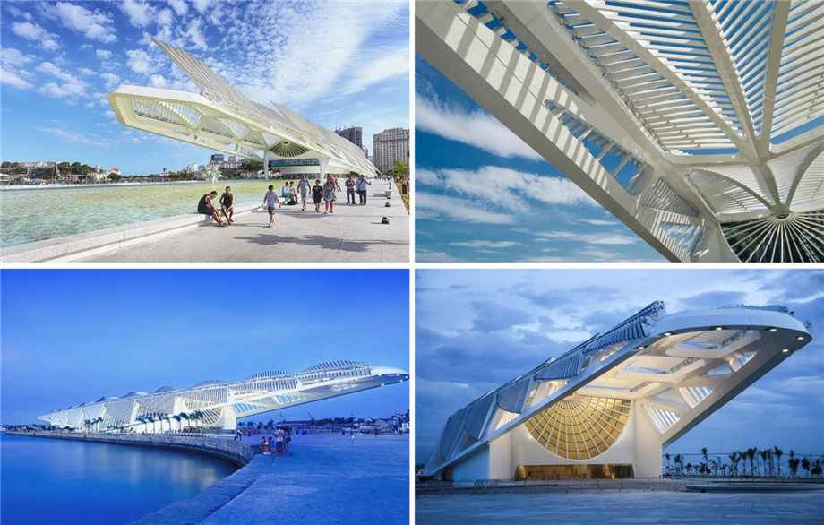 这座博物馆的设计受到了卡里奥卡文化的启发,借助建筑而探索城市与自然环境的关系。这栋建筑的特色便是其面向广场一侧长75米、面向大海一边的45米长的悬挑结构,它们使得博物馆从码头向海湾延伸的动态更为明显。